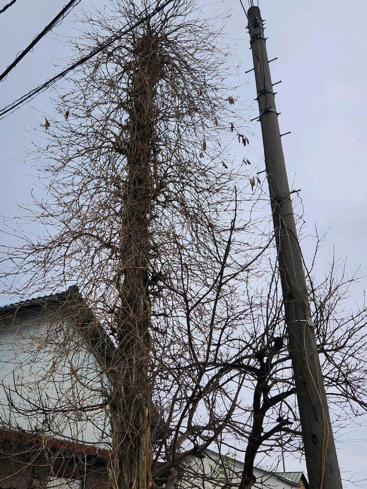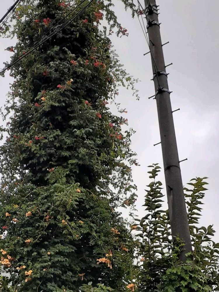 ノウゼンカズラは葉っぱがある時もギョッとするけど、ない時もちょっと怖いね👻