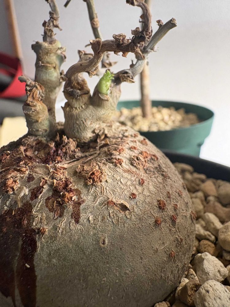 室内で冬眠中の夏型塊根の一部に目覚めの兆候が👀
