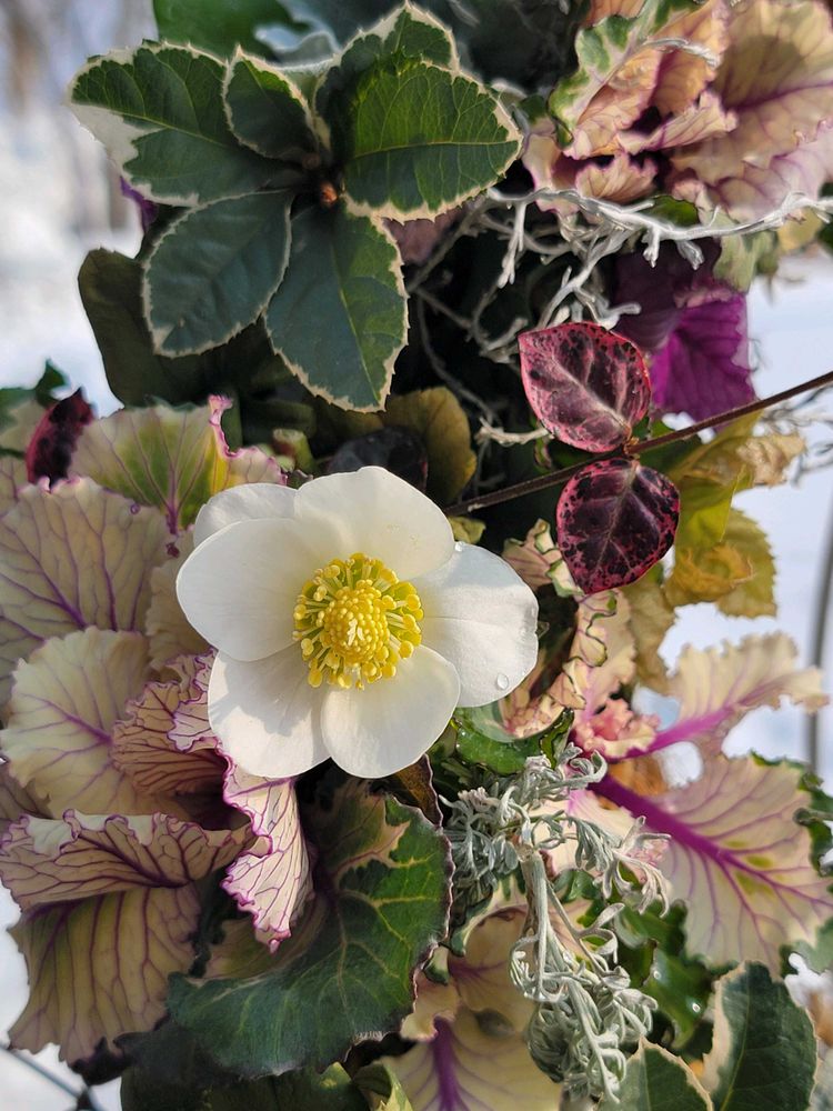 クリスマスローズ🤍右上のハツユキカズラ❤💚も綺麗に班入りに育ってます😍