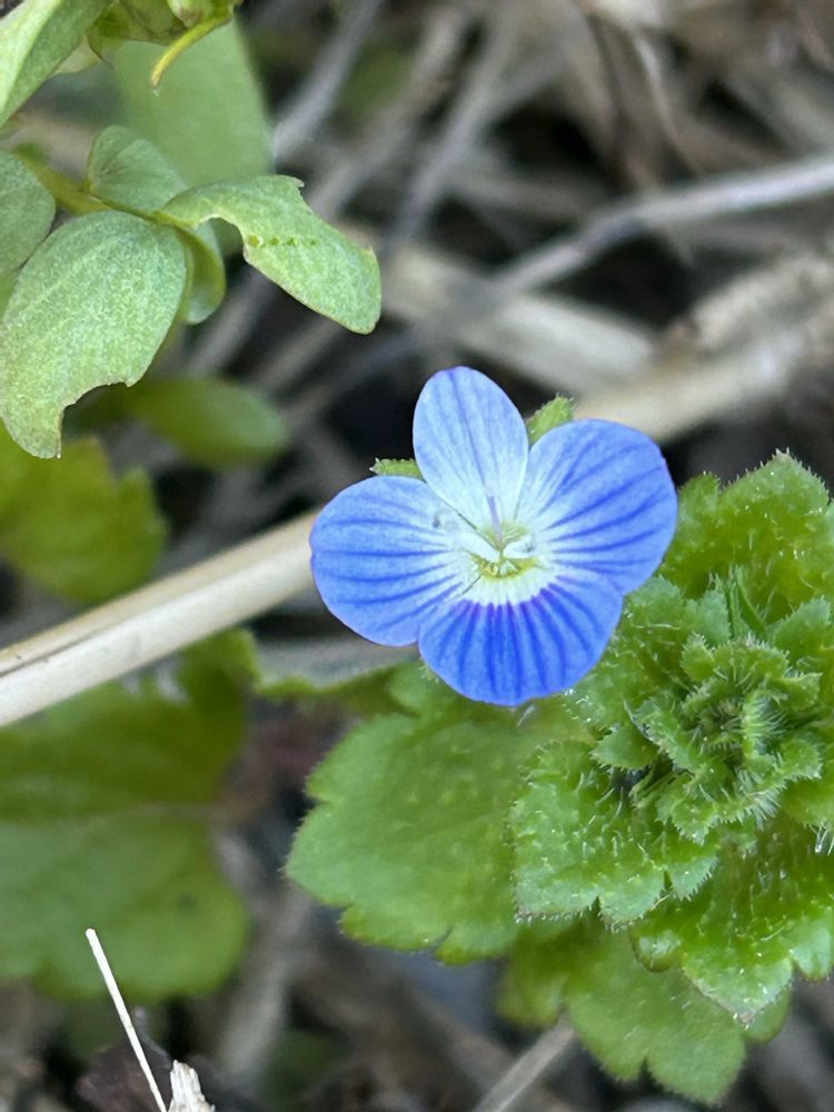 先日、雪解け進んだ土手でオオイヌノフグリを発見💡