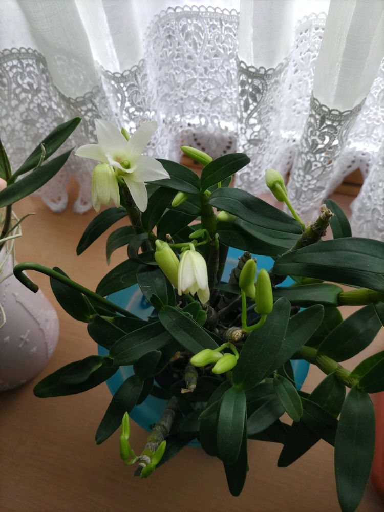 〈地道投稿〉連日同じもので💐🙇1️⃣「ギンギアナムベリーオダ(5年以上)」朝に一輪開花しました2️⃣アップ3️⃣「デンドロビウム エンゼルベイビーグリーン(5年以上)」一輪カッコよく開花です4️⃣「トキワシノブ(3年目)」根が見ないうちに、ごちゃごちゃしてきました(後姿)