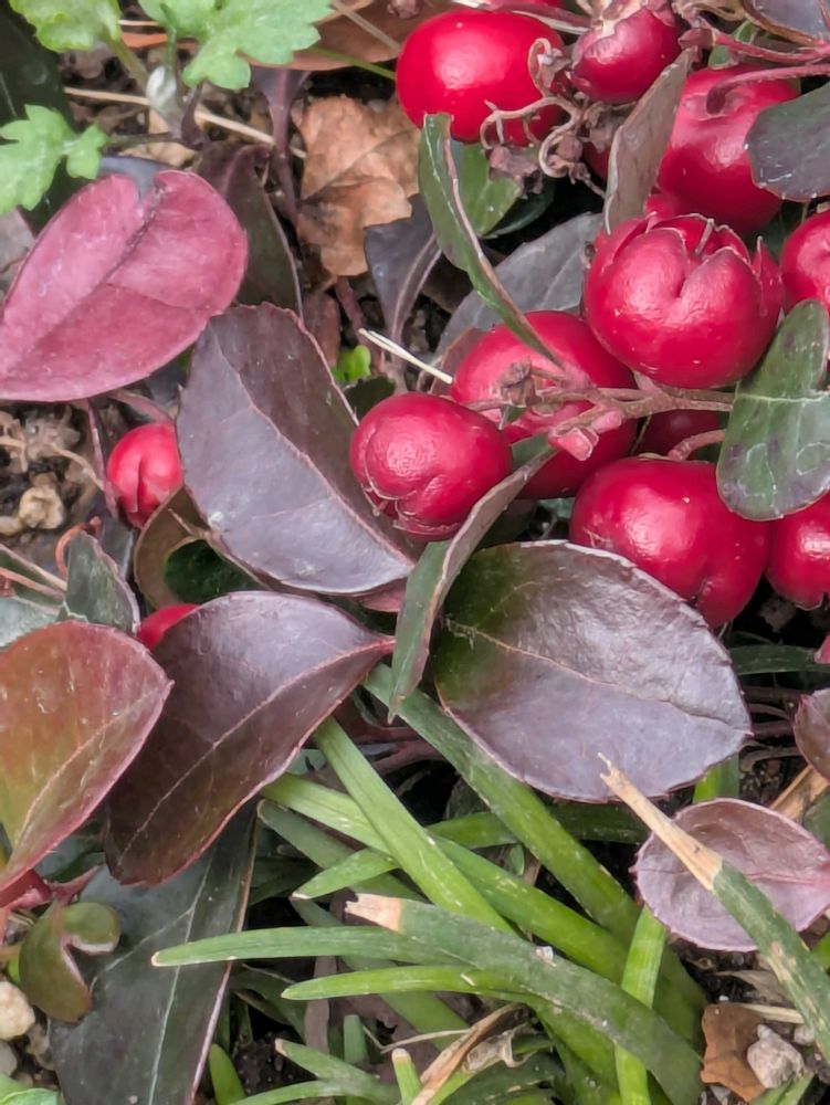 ①チェッカーベリー別名オオミコウジ、ヒメコウジ、ゴールテリア ツツジ科 シラタマノキ属(ゴールテリア属)