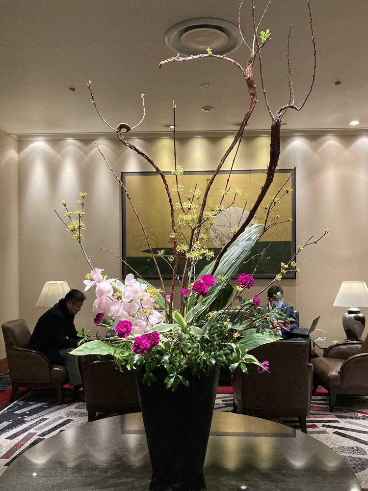 ホテルニューオータニ東京 ロビイ階ラウンジの装花。