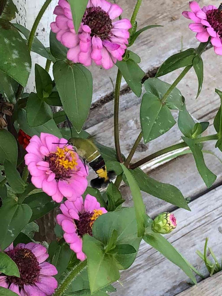 すごい速さで羽を動かして、花から花へ蜜を吸っては、忙しく飛び回っていました😅
