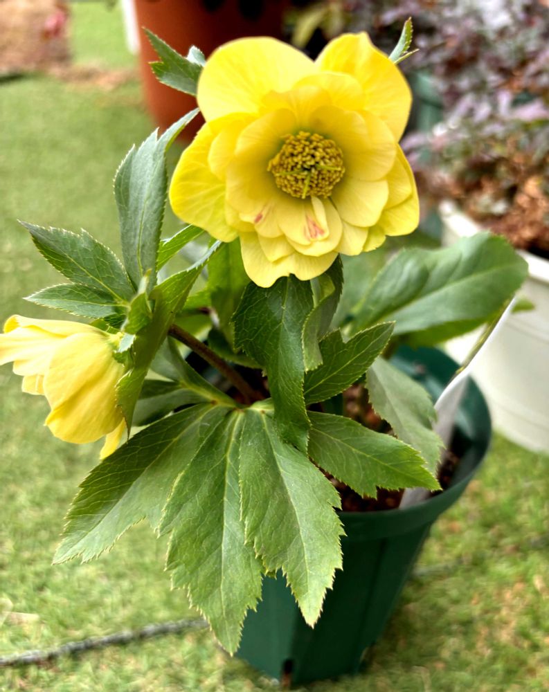 ①去年買った八重咲きの黄色のクリスマスローズ 初めて咲きました名前無し以外とかわいい💕