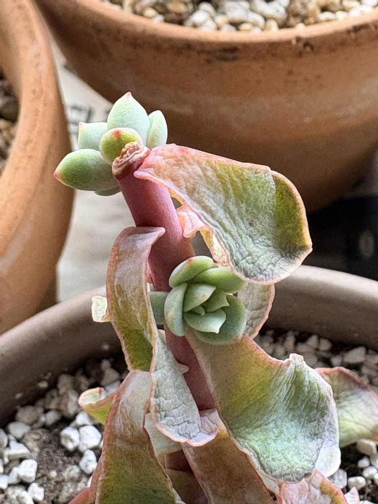 2025年4月にネットでたにたのさんの苗を購入した時におまけでついてきた名無しのエケベリアが面白く育っているので、成長記録を作りました。 この子の名前ご存知でしたら、ぜひ教えてください🙏