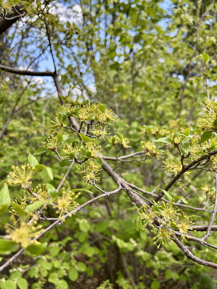春先3月に💛の花から咲き始め、4月の半ばには新緑ういういし。2025年04月12日📸東京都薬用植物園