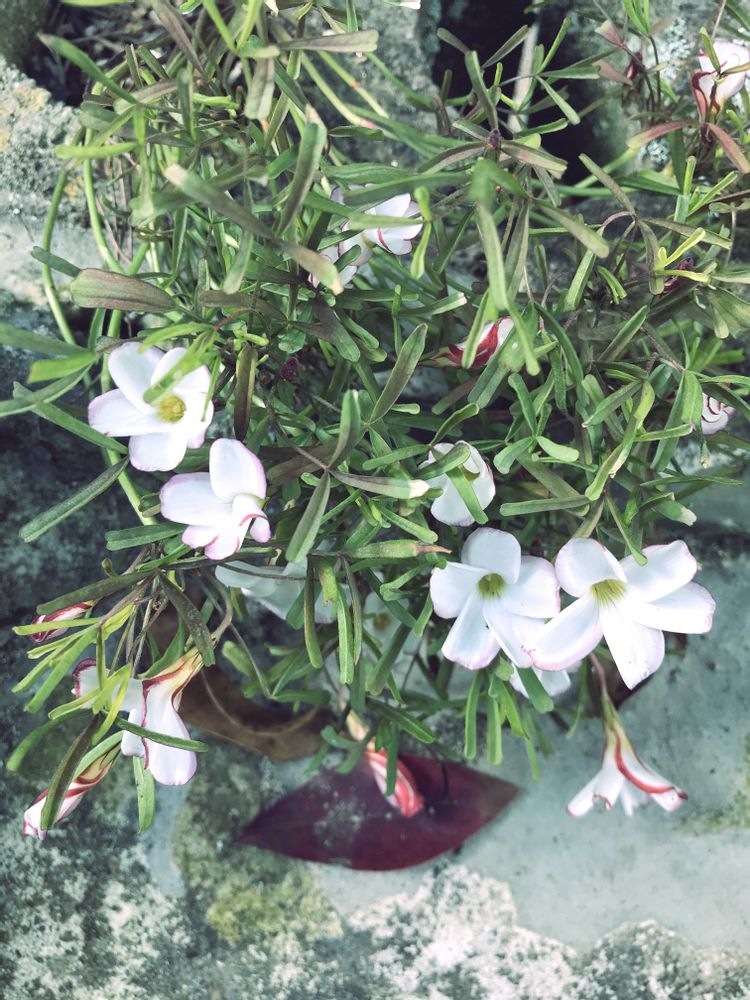 オギザリス、ブロックの穴に、実が落ちたのが毎年咲きます可愛らしい(๑・̑◡・̑๑)