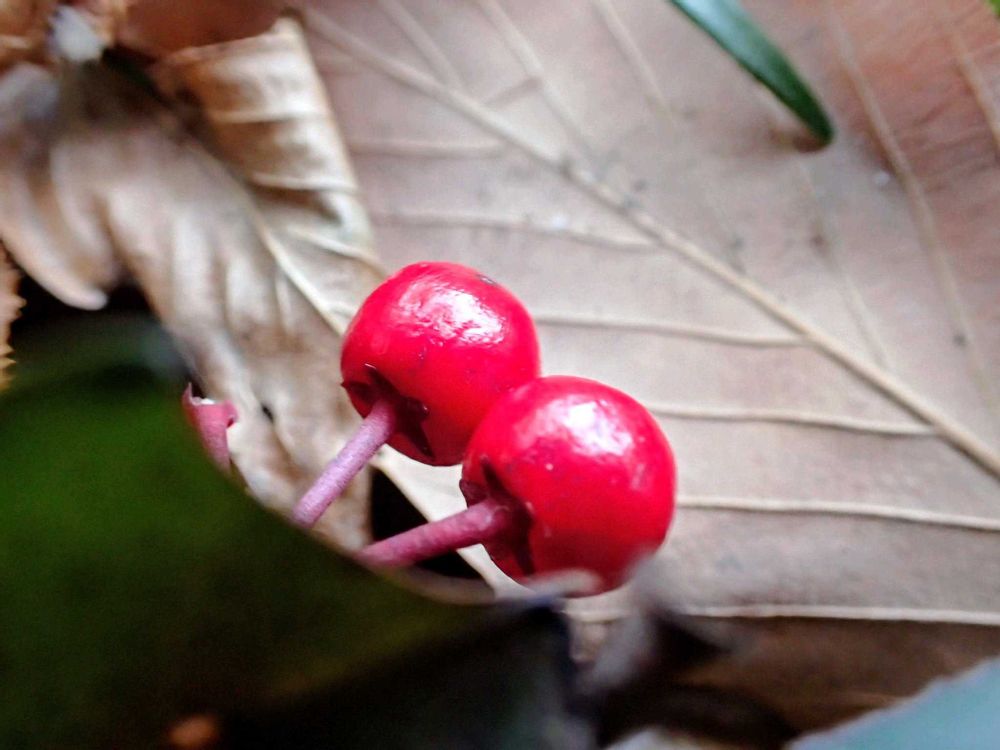 近所の森にはヤブコウジやマンリョウがたくさん生えてるけどたまにポツンとセンリョウも生えてます💸💰、、、がセンリョウってヤブコウジやマンリョウとは仲間ではないですよね❔🤔