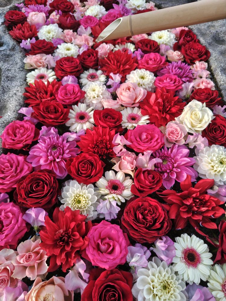 見応えのある花手水ですよ👍