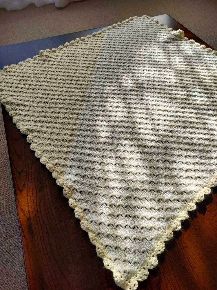 編み物は普段はしませんが、小学生の頃に手芸クラブで覚えた〝くさり編みと長編み〟で、おくるみを編んでみました🍀