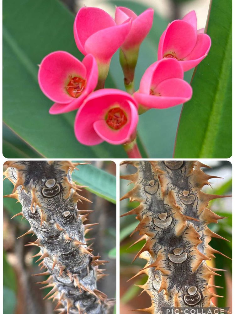 上部には可愛らしい色のリップ💋のようなお花、下の茎には、悪魔のような棘👿