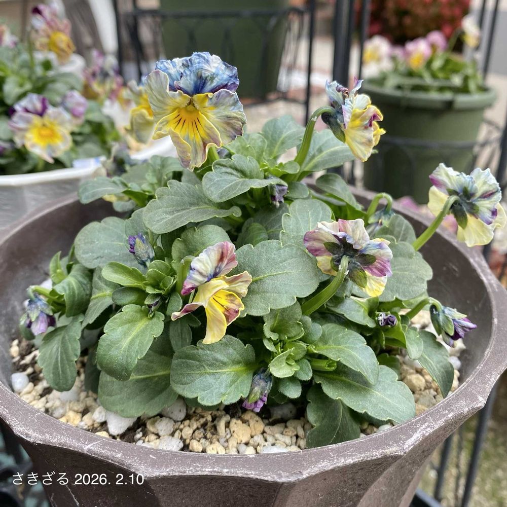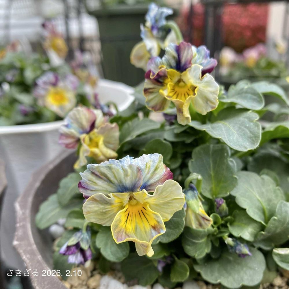 花工房すながさんのビオラペルル🌱先月の花色は📌②1/12の画像…あれっ結婚記念日だっ😆とどうでも良い情報で脱線させる🙊本線本線💦📌①どっ寒い日々が続き花色も変わりお花もぎゅっと寒さに耐えている様がなんとも愛らしくて好き🐒💕
