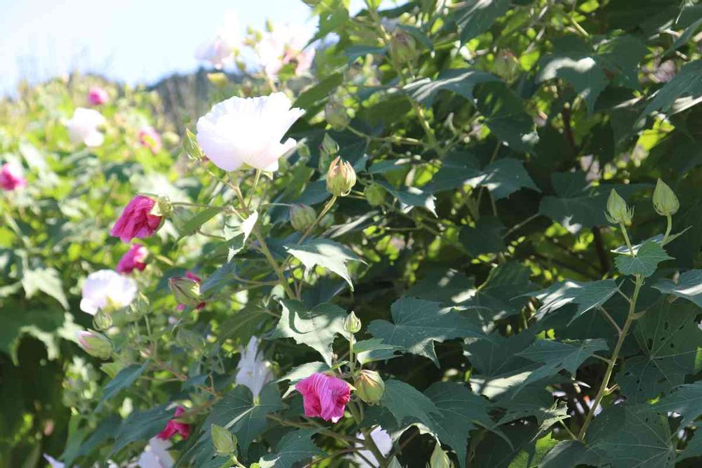 アオイのつぼみピンクでしたが咲いたら白いのには?