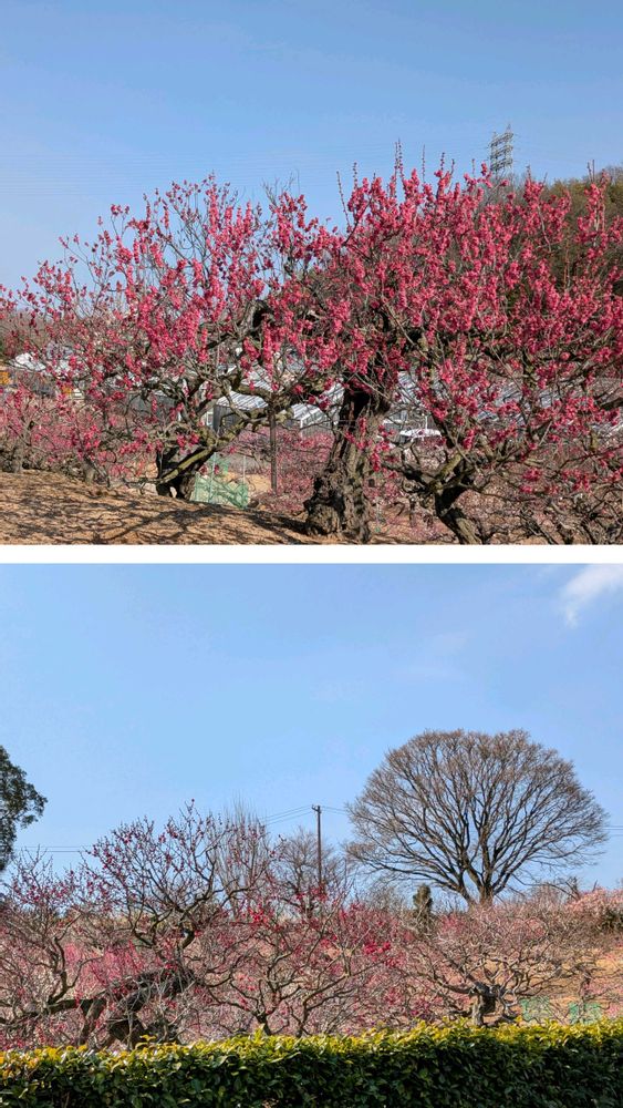 梅園の梅も青空に映える🏵️🌸🟦