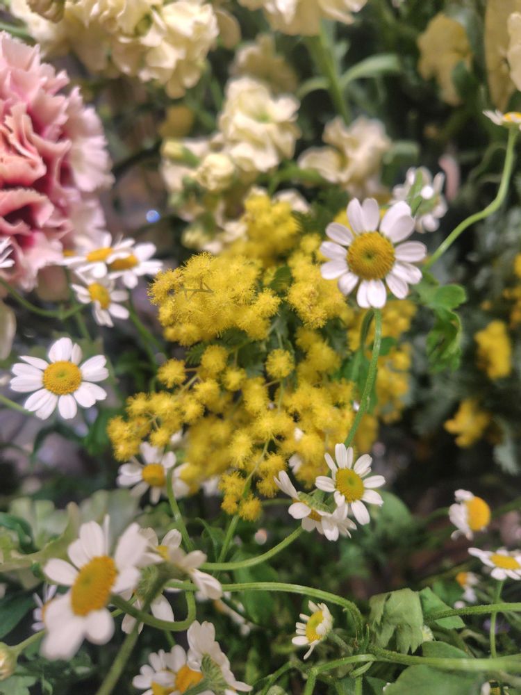 4️⃣職場のフラワーコーナーでミモザが素敵でした💛🤍💛🌿