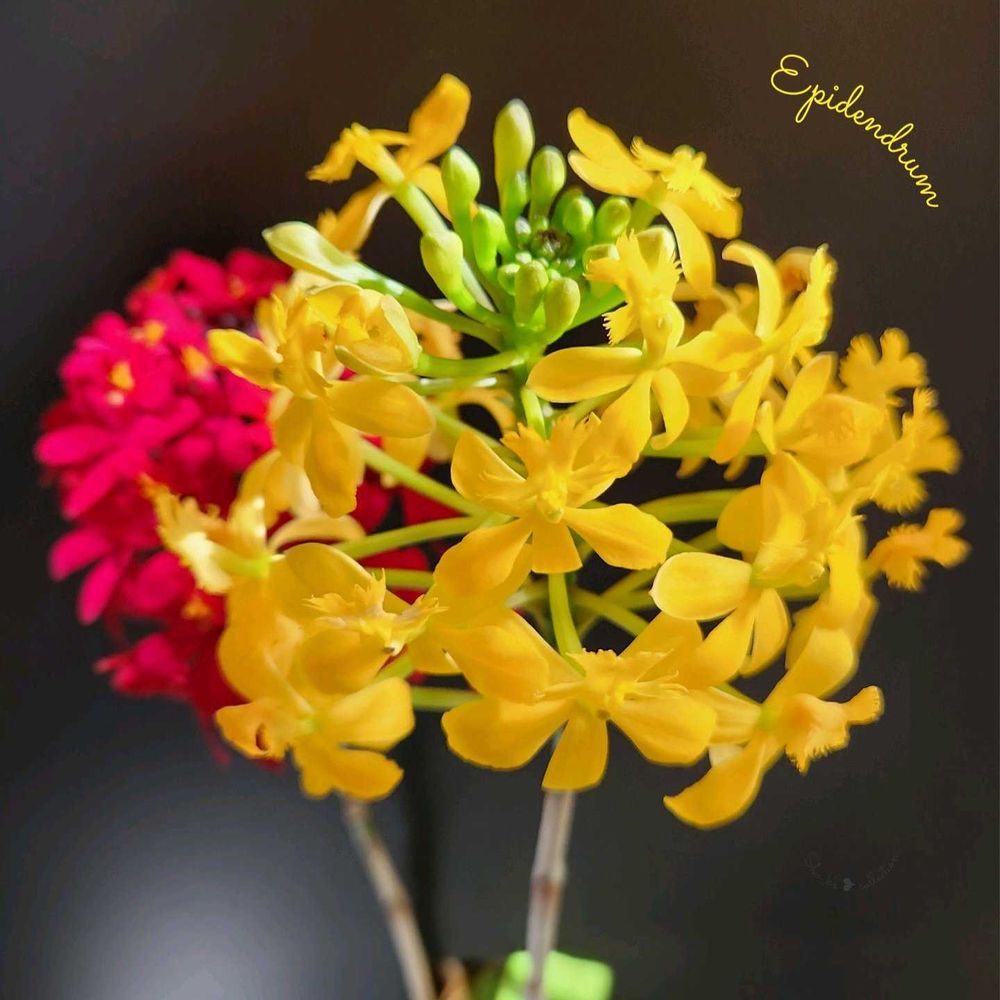 3️⃣ 黄色のエピデンドラムの花のアップ