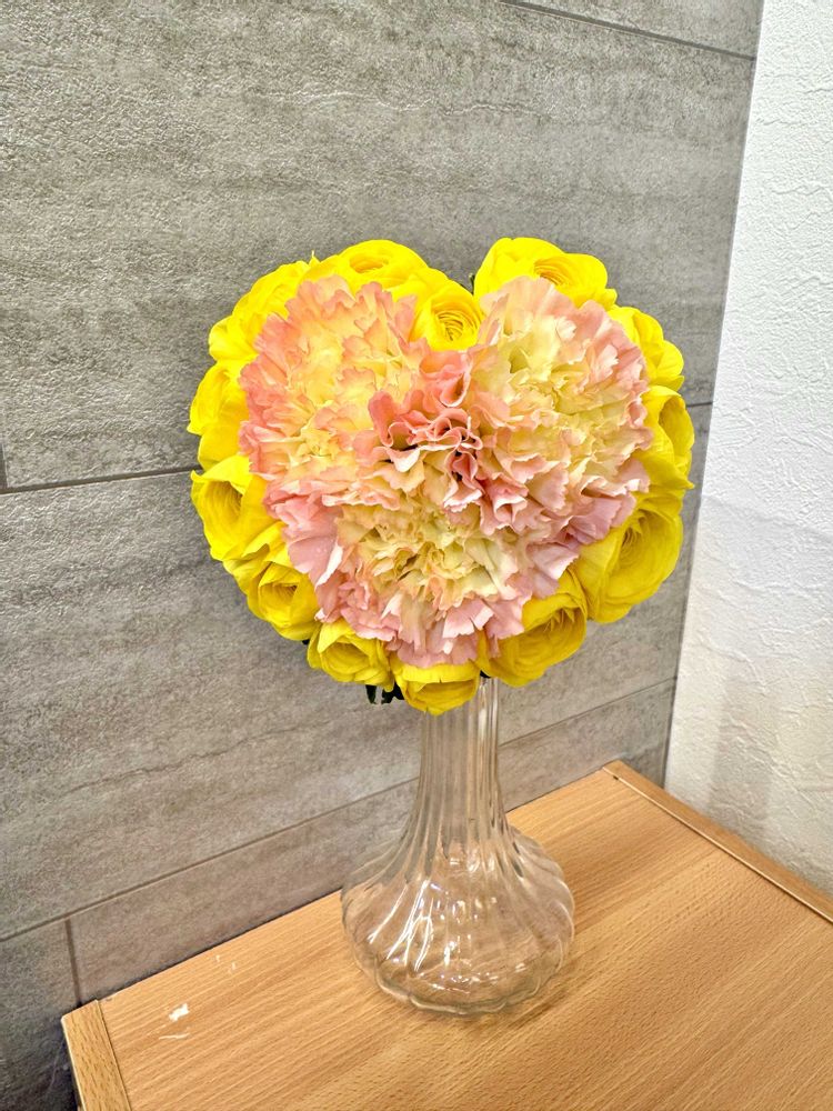 可愛いブーケ💐 ハートの形にするのは 難しそーですね〜💛🩷💛🩷