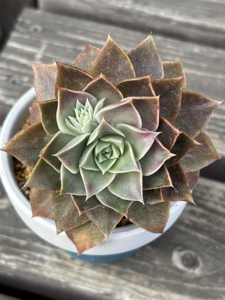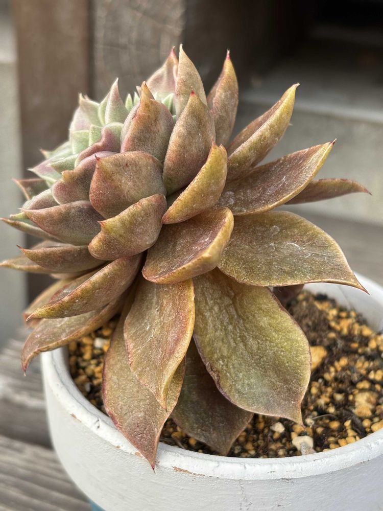 2025年4月にネットでたにたのさんの苗を購入した時におまけでついてきた名無しのエケベリアが面白く育っているので、成長記録を作りました。 この子の名前ご存知でしたら、ぜひ教えてください🙏