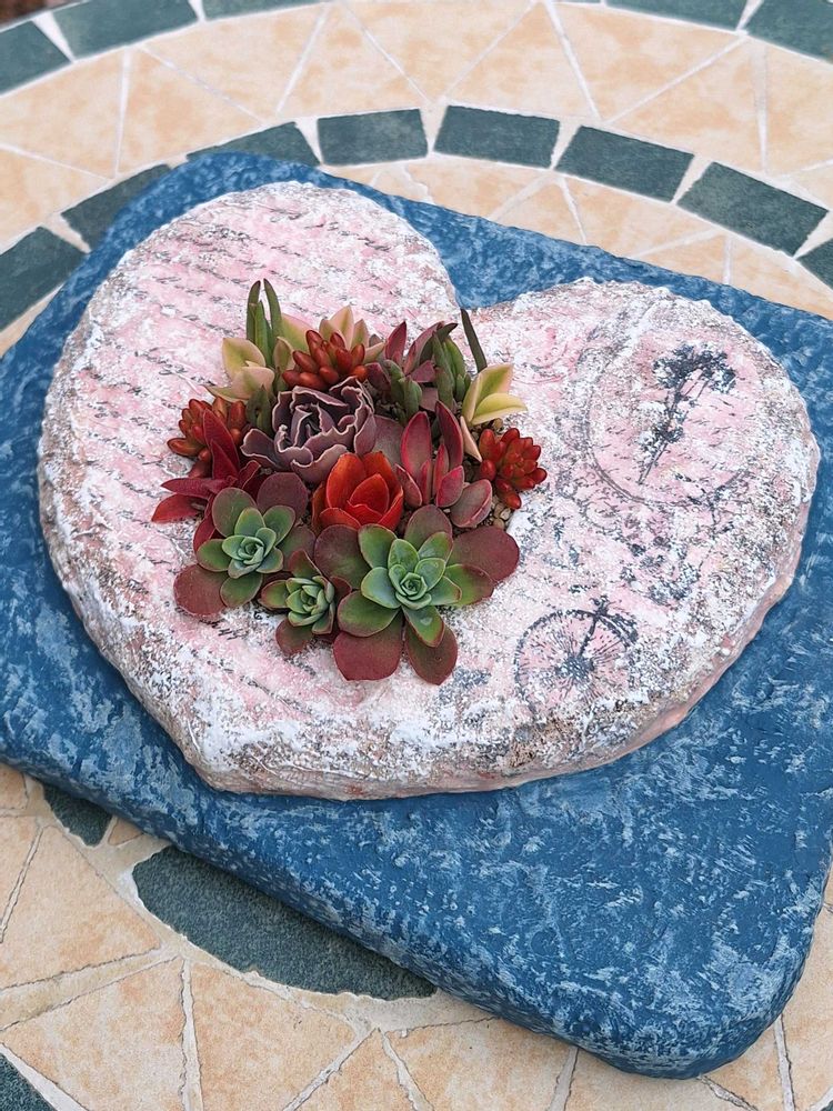 ④今日はバレンタインデーなので、ハートのモルタル鉢🩷に寄せ植えをしてみました❕😊