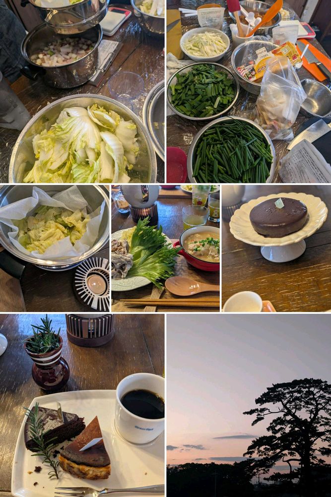 Googleフォトが「木曜日の思い出」と題してコラージュしてくれました🍀😊✨2026年2月12日㈭🧑🍳お友達の家でキムチ作り🥬Lᵘⁿᑦᑋ𓌉𓋪𓌉ᐝ手づくりケーキ🎂ψ(´ڡ`♡) オイシー♪夕焼け🌇大木🌲~♬♬
