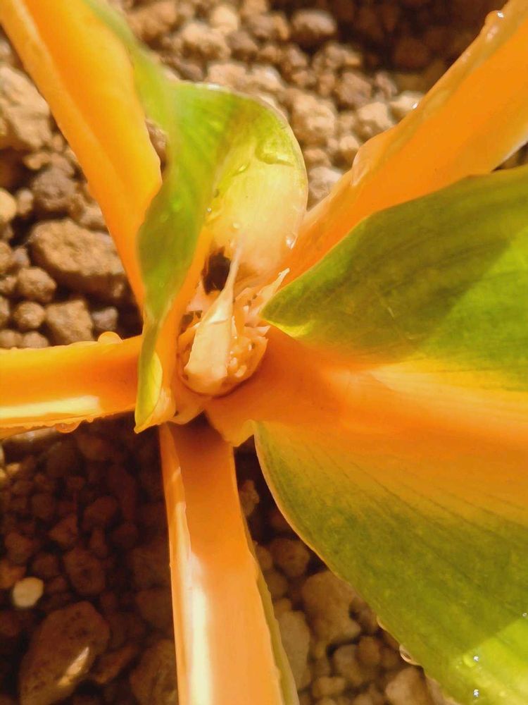 窓から暖かな日差しが注ぐ中、窓辺で観察。中心部から育つ新芽に黒い斑点😂。なかなか難しいですね。