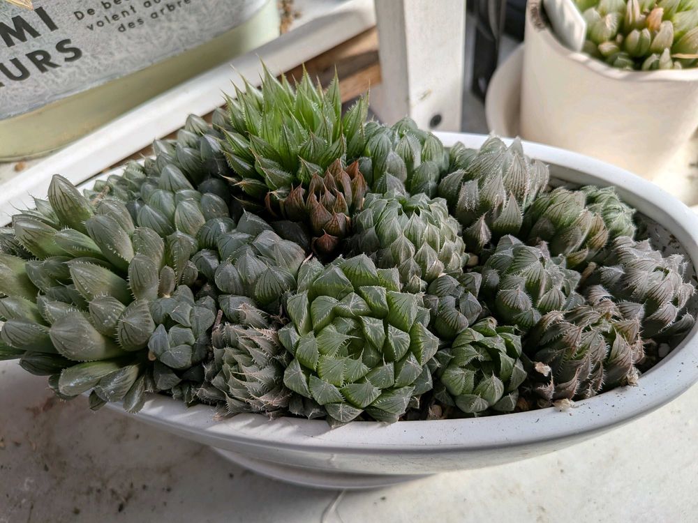ハオルチアの寄せ植えです!植えてから、モリモリになるまでと、しばらく育てて、ギュ〜ギュ〜、モリモリになりました❤色々な種類を一緒に植えるのも、また面白いで〜す✨