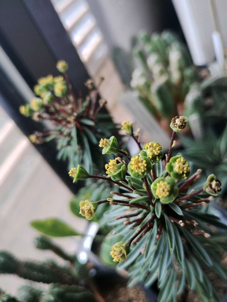 ユーフォルビアはもう長い間咲き続けてます。置き場所無くて💦娘の部屋の窓辺を間借りして置いてます😅