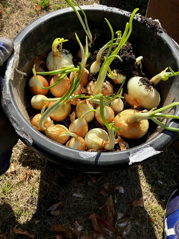 去年の春の玉ねぎです。植えれば葉玉ねぎとして楽しめるらしいですね。