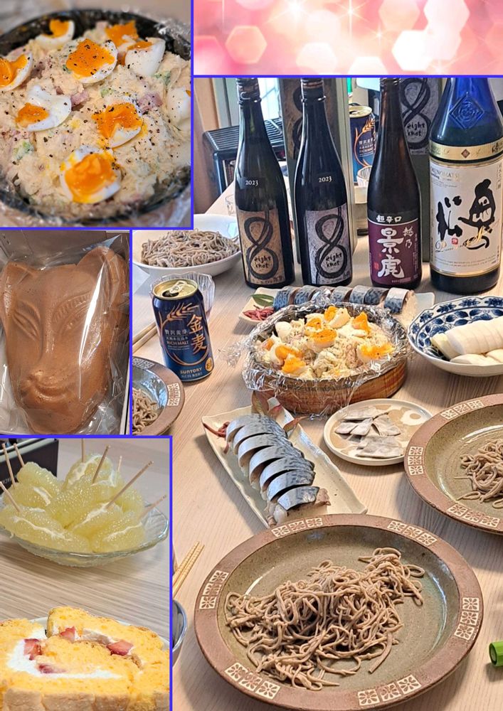 他は各々持ち寄りで、私は前日作った「鯖寿司」と「大根焼酎漬け」「果物」「日本酒」を🎵