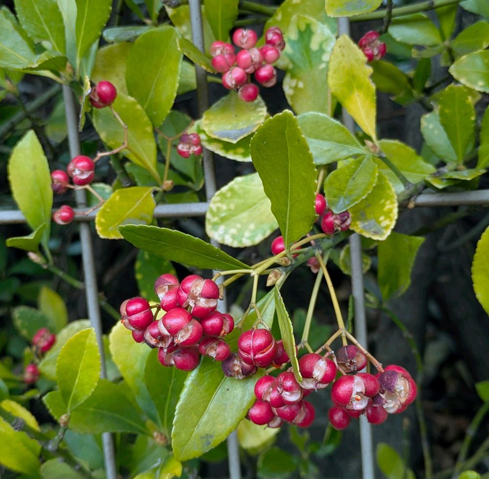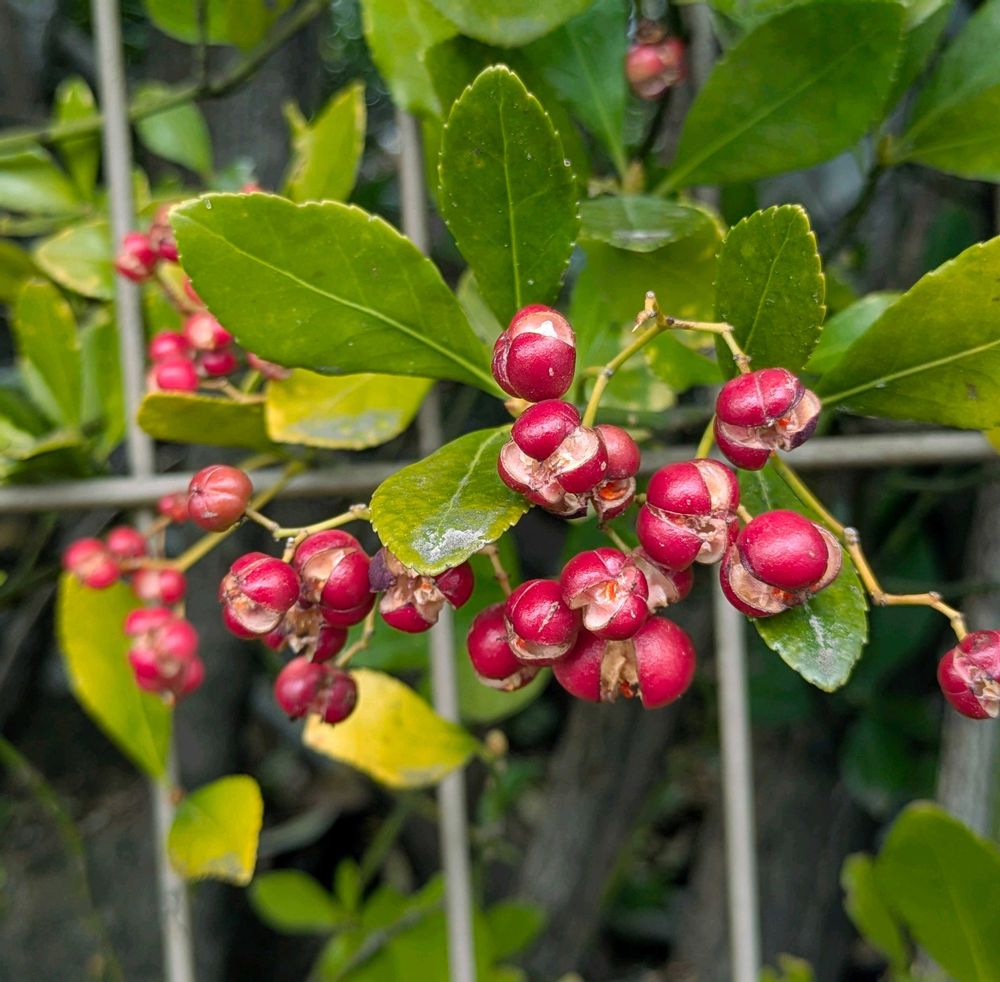 マサキの実が弾けてる