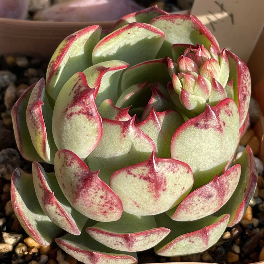 2025年4月にネットでたにたのさんの苗を購入した時におまけでついてきた名無しのエケベリアが面白く育っているので、成長記録を作りました。 この子の名前ご存知でしたら、ぜひ教えてください🙏