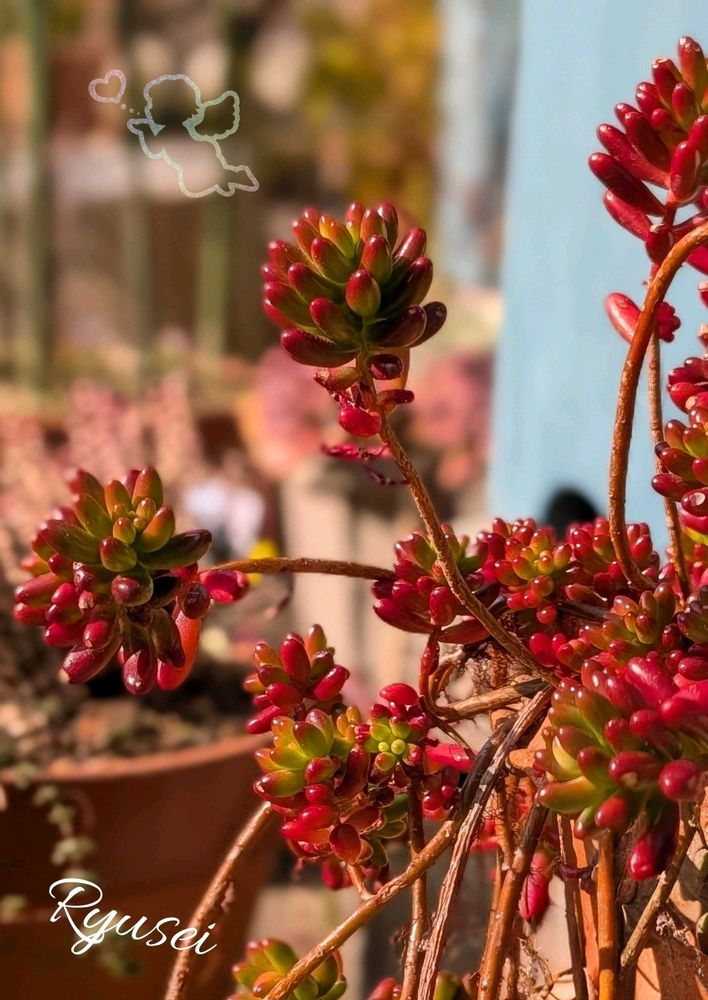 赤く紅葉したニジノタマさんぷくぷくした姿がゼリービーンズみたいですね𓈒 𓏸𓈒𓂂𓂃♡(*ˊᵕˋ*)💕