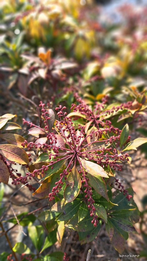 お花屋さんでこの頃の新葉のアセビを切り花として売ってあります。緑の葉と新葉の赤い葉や白っぽい葉のコントラストがとても素敵ですよ♡♡