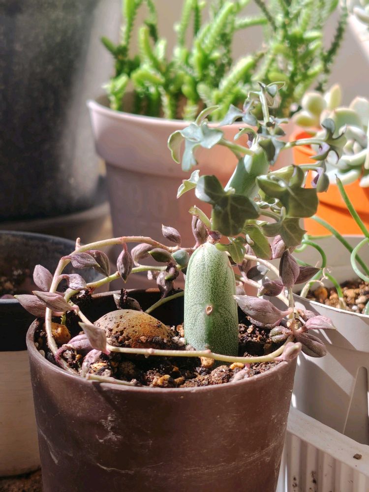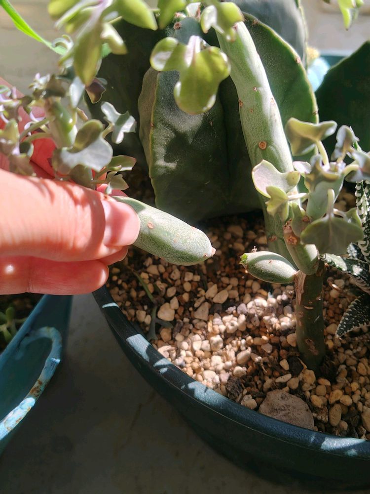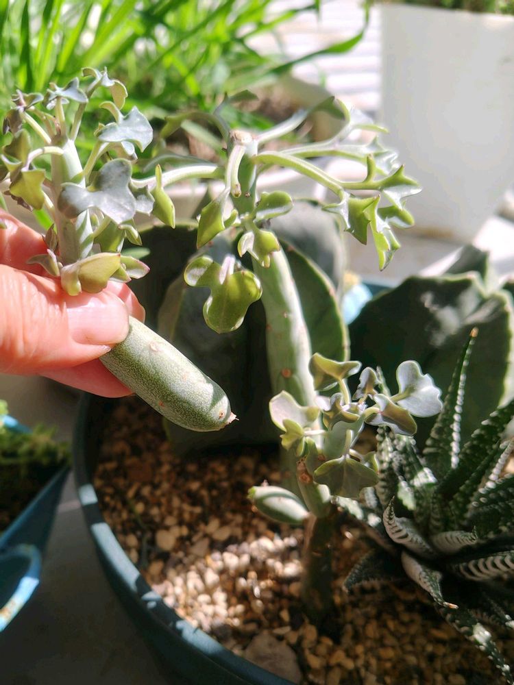 良かれと思って、日の当たる場所に移動させたら、お手々が取れてしまいます。他の鉢に居候。