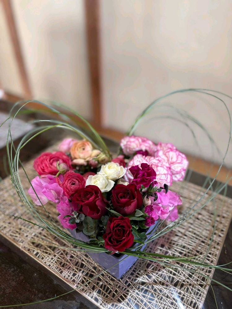 ①娘からのハートのアレンジメント。