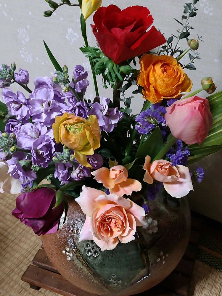 ③宅急便で娘から春の新鮮なお花も届きました 🎶