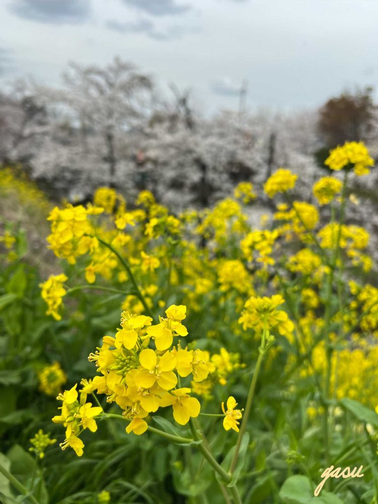 ⑤昨年の春地元の境川の花見🌸で咲いてた菜の花💛(昨春コラージュで投稿)