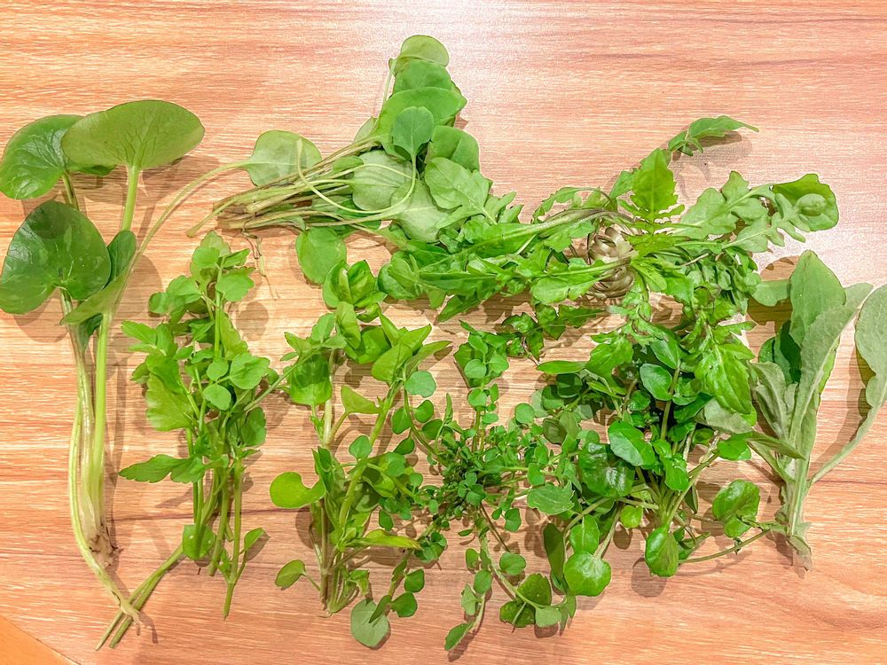 流れ着くクレソンさんの周りにたくさん春の野草さんたちがいらっしゃいましたので旧正月を前に七草粥を