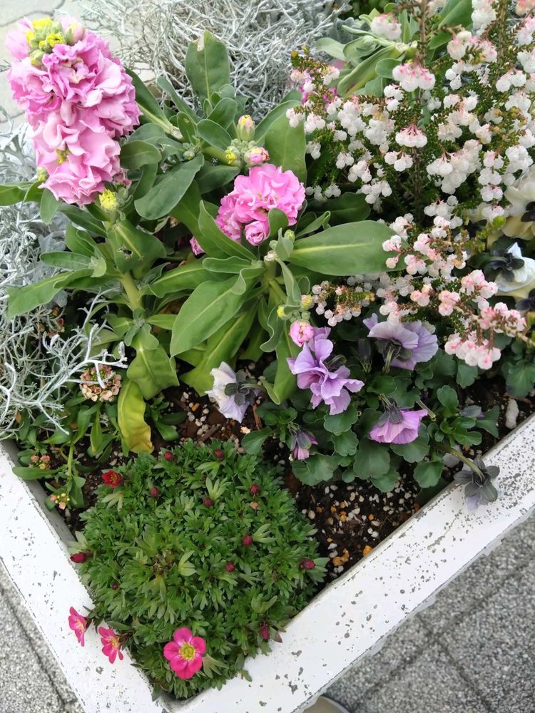 病院🏥帰りの歩道のプランターの花