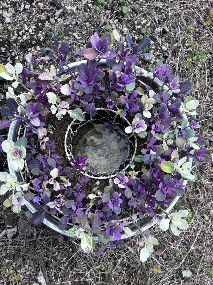 葉牡丹の採種はリースのミニミニ葉牡丹からは採れないと思うので(たぶん花が咲かない)、なるべく大きめに育っている葉牡丹から試してみてください。寄せ植えとかになってるのかな? これからトウ立ちして花が咲くと思うので、ぜひチャレンジしてみてくださーい😚