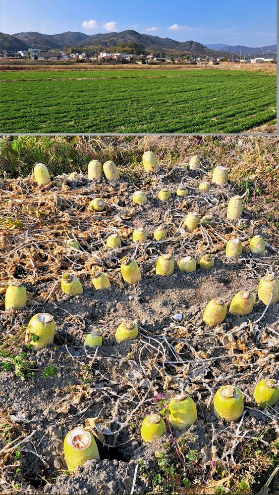 何時もは青々した葉っぱの間から見え隠れしている大根が葉っぱ無しでした。
