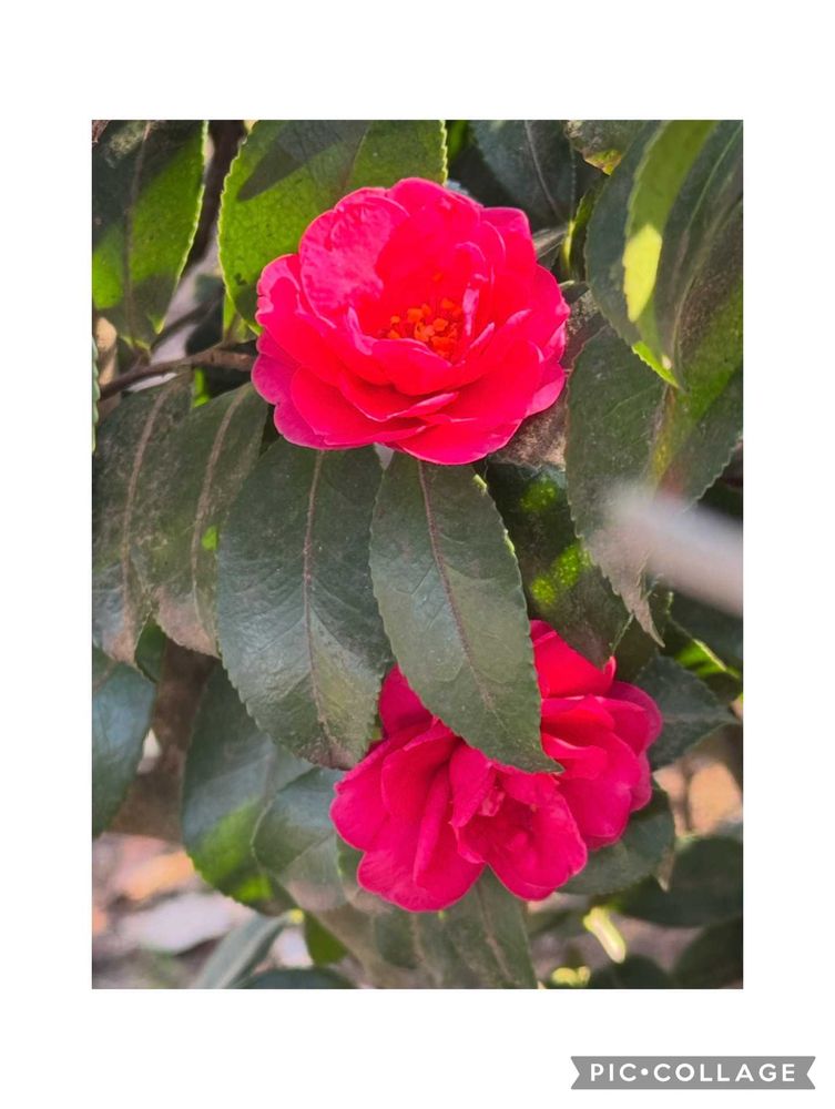 サザンカとツバキの交配種、背が高くなりにくく生垣に使われています。