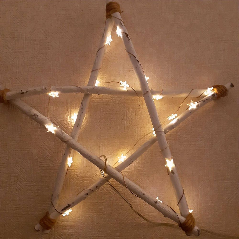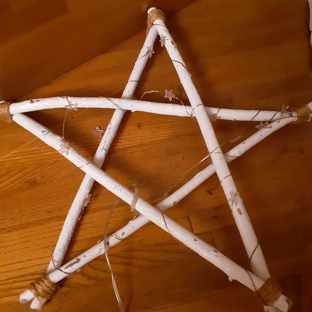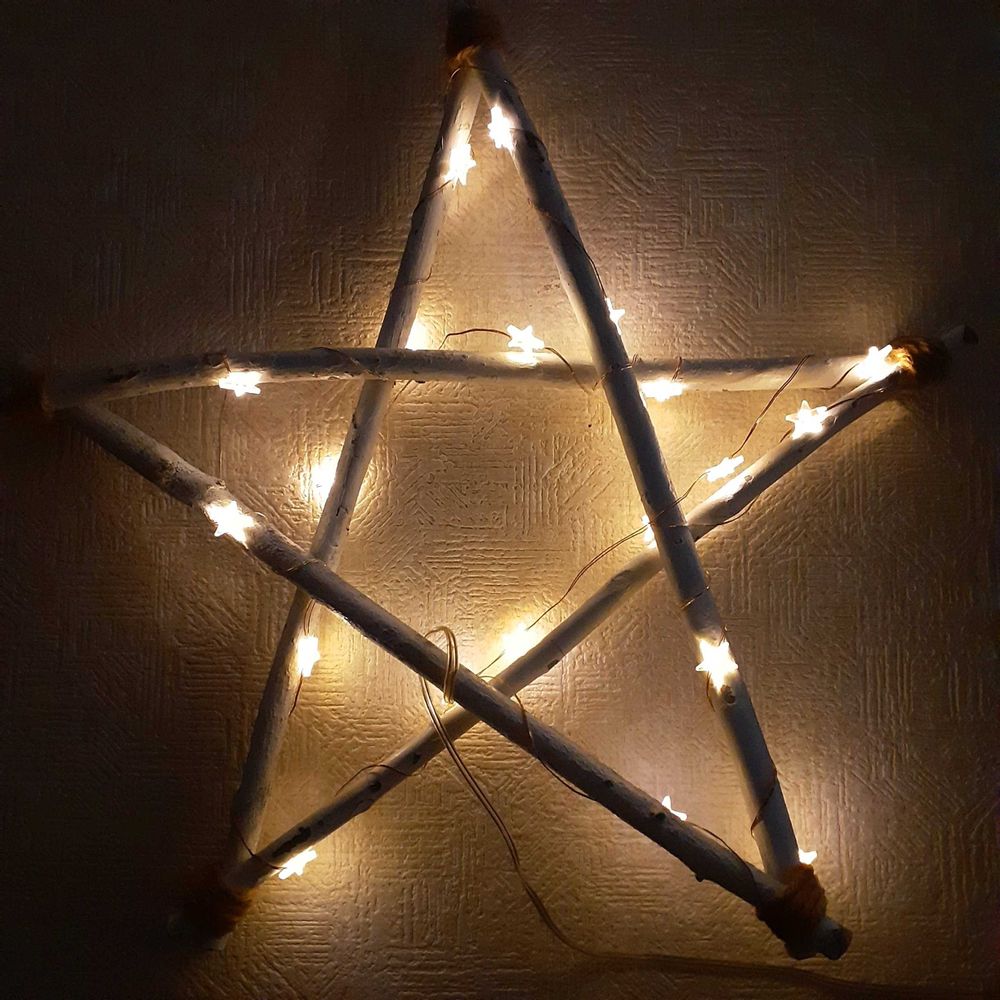 私も枝で星型にして玄関のドアに下げてますよ😊