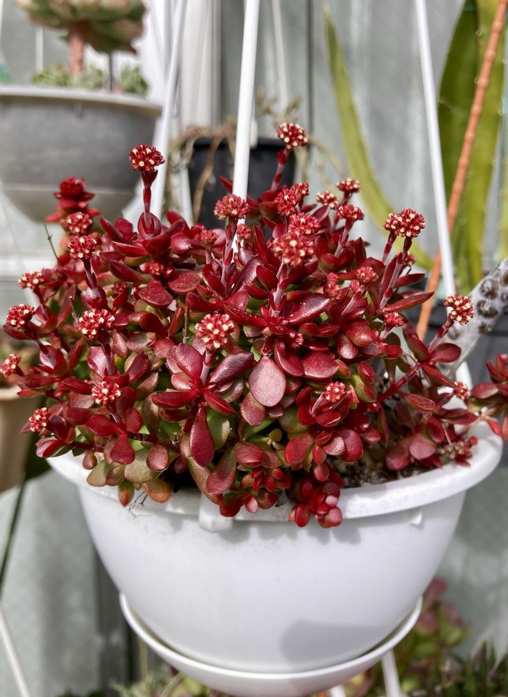 吊り鉢に入れてあるこの株が、すご〜く赤くなってます。