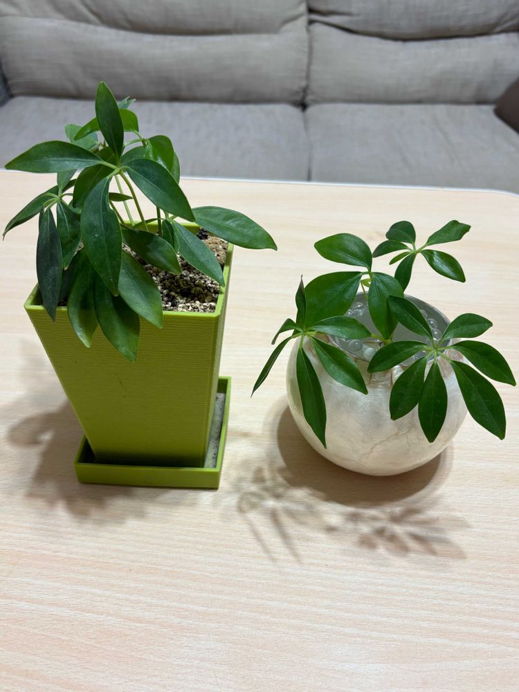 3枚目のカポック、左は水差しから土に植え替えたもので、右は水差し中で、暖かくくなったら植え替え予定です。