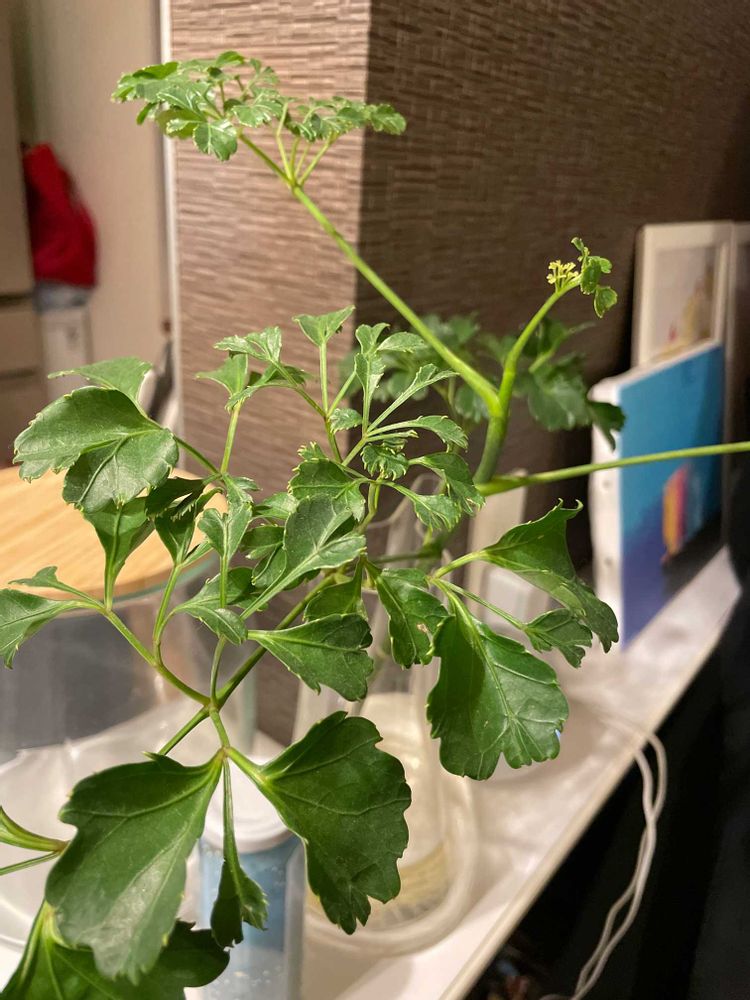 以前お花屋さんで買った切花で、とても丈夫で根が出て来ましたが名前を忘れてしまいました。