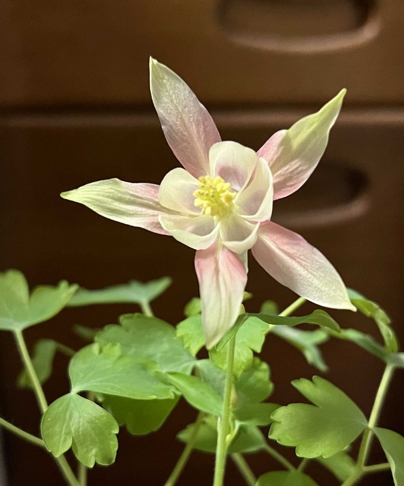 こぼれ種から芽が出たオダマキが、もう咲きました。