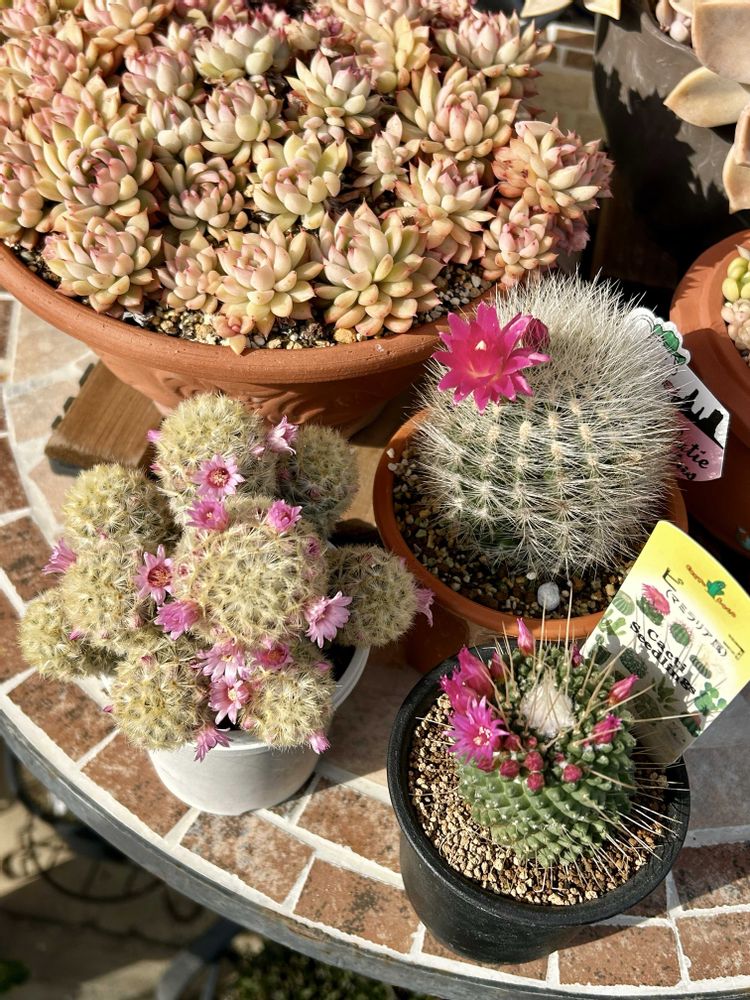 サボテンもみんな元気だなぁ😄女雛丼も👍うちの女雛絶滅寸前😢寄せ植えに残ってる数少ない子たちを大切に育てなくちゃだよ🥹女雛丈夫たと油断してた~😂💦