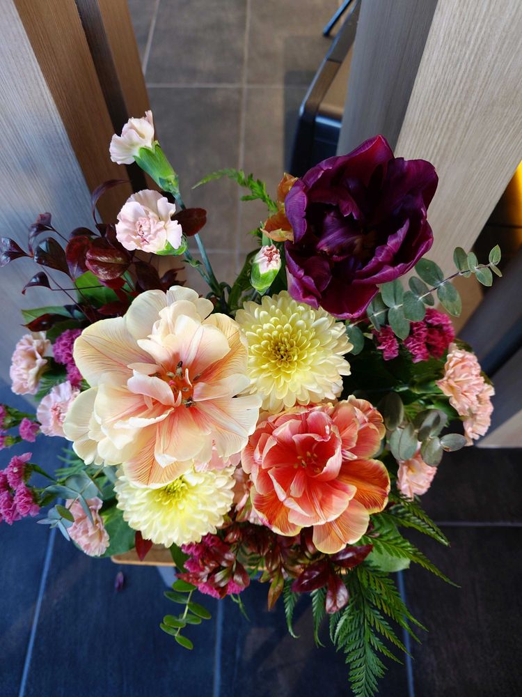 ここの歯医者さん、いっつもステキなアレンジですよね。 春を感じるチューリップ🌷がまた存在間たっぷり❗️生けてくれるお花屋さんのセンス抜群です👍